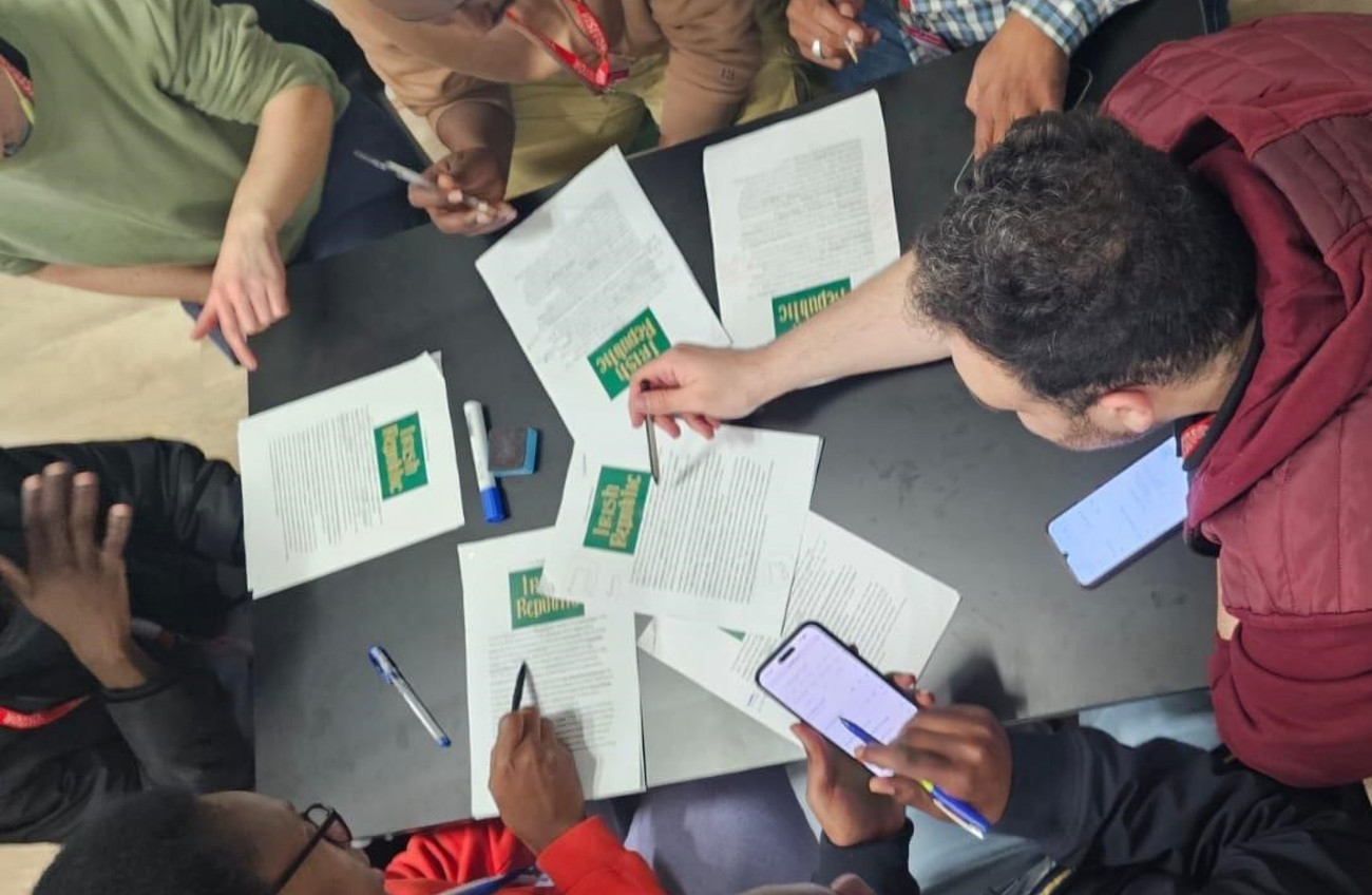 IN A MAKESHIFT classroom in north Dublin, a group of nine students sit having conversations in broken English.
