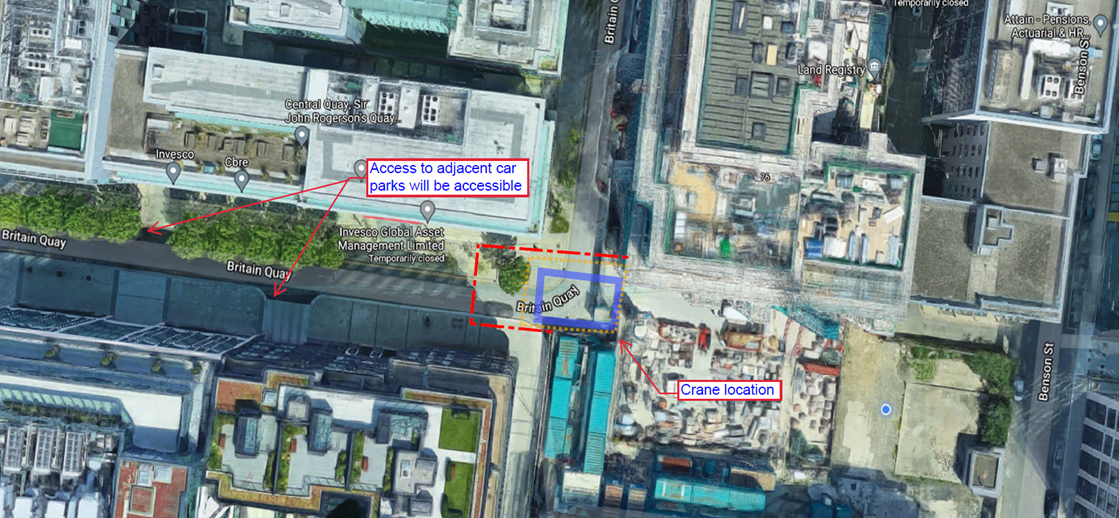 Please note the upcoming Road Closure on Britain Quay, on 6th and 10th of August, from 7:30 am to 6pm – there is a placement of a mobile crane at the corner of the site.